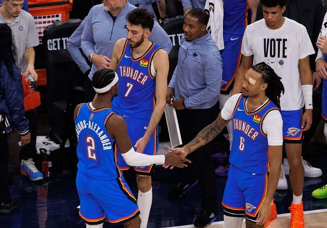 雷霆虽然阵地进攻并不是他们的强项(但也优于联盟70%的球队了),但对手很难压下节奏和雷霆打阵地战,亚历山大带着华莱士、多特冲起来,抓对手失误攻守转换的能力联盟顶级。只不过在大比分领先后,雷霆替补明显有些松懈,这是他们本赛季最大弱点,之前输给开拓者就是这样被翻盘。本场比赛卡鲁索也不用出战,杰威依旧可以放心休息,打完本场比赛后,雷霆接下来面对国王+爵士+开拓者+森林狼+太阳,整体难度都不大,就看后面的掘金和火箭能不能咬住雷霆了。